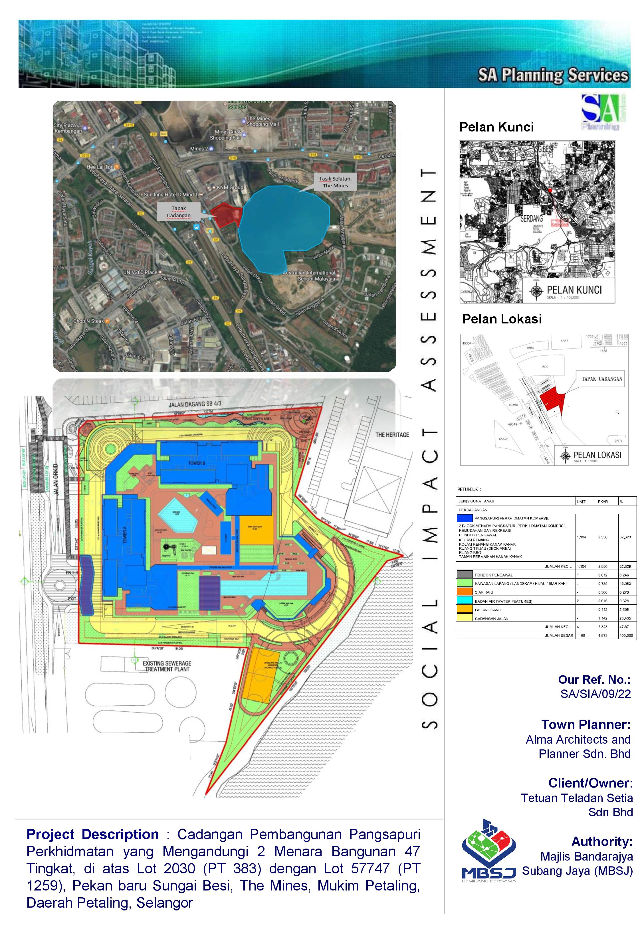 Kajian Penilaian Impak Sosial (SIA) Bagi Cadangan Pembangunan Pangsapuri Perkhidmatan Di Atas Lot 2030 (Pt383) Dan Lot 57747 (Pt 1259) (The Mines Resort City) Seri Kembangan, Pekan Baru Sungai Besi, Daerah Petaling, Selangor Darul Ehsan.